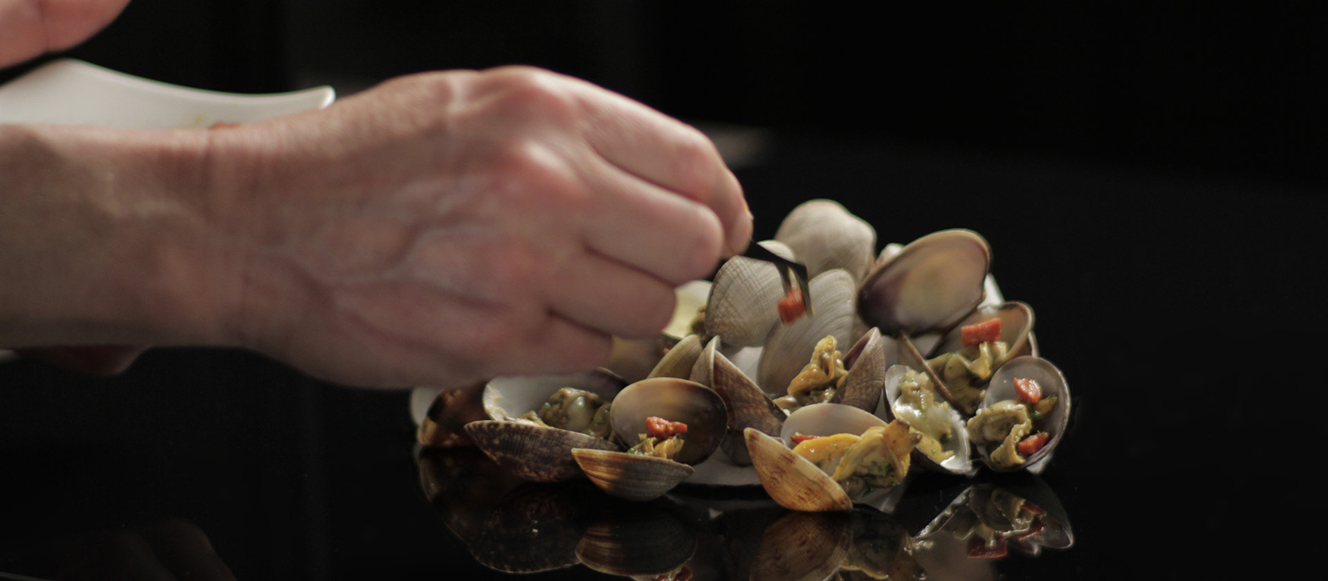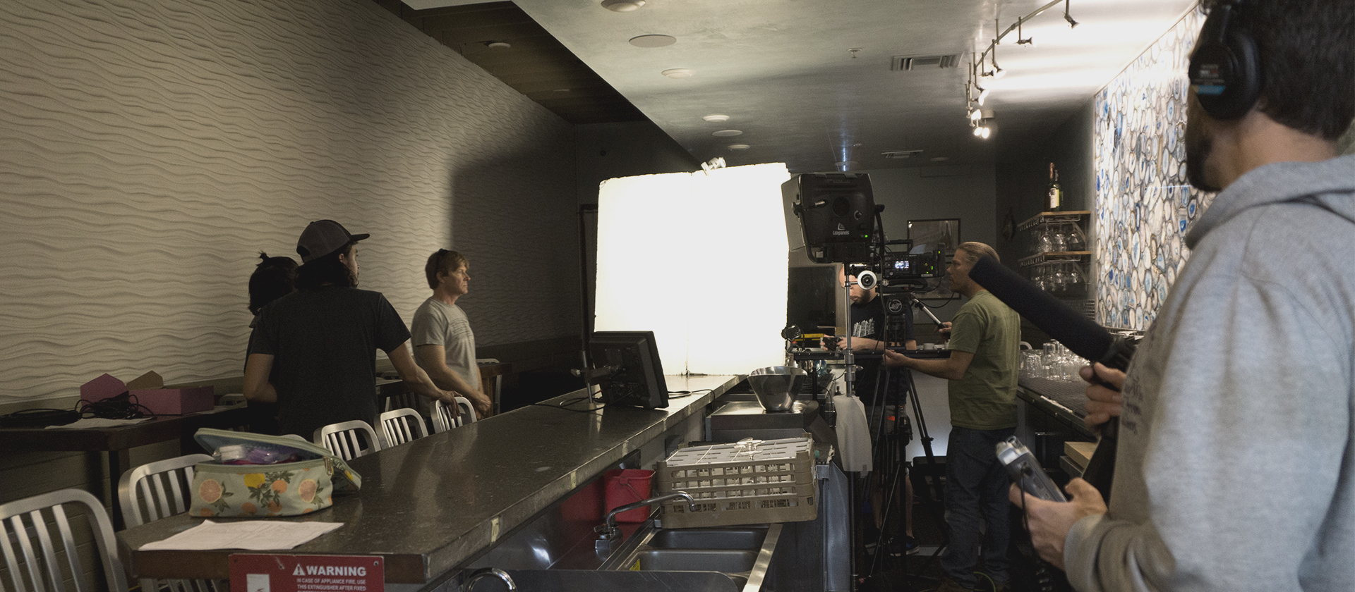 The production made extensive use of a fully loaded 1-ton grip truck. First order of the day was to block the entire glass, front-wall of the restaurant to exclude all exterior light sources. We then turned to the interior and switched off everything. Finally we started setting up for our first shot of the day: the clams. Camera was setup for shooting in 16-bit 4K RAW at 48 fps.