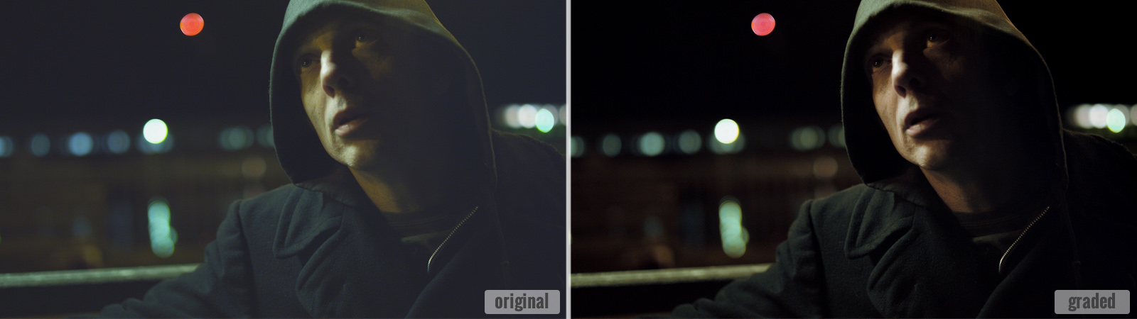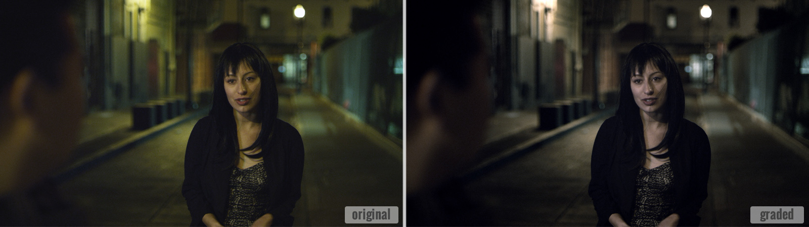 Below I've posted selected frames (original and graded) from a few scenes to give you an idea of the goals of the grading session. As you can see from the examples, some corrections were quite subtle while others were more significant or dramatic.